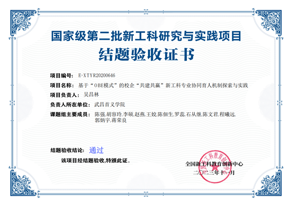近日,教育部发布《教育部办公厅关于公布第二批全国新工科研究与实践项目结题验收结果的通知》(教高厅函〔2023〕21号),我校机电与自动化学院于2020年12月获批立项的教育部第二批新工科研究与实践项目《基于“OBE模式”的校企“共建共赢”新工科专业协同育人机制探索与实践》顺利通过结题验收。这是我校首次承担并顺利结题的国家级教学改革项目。