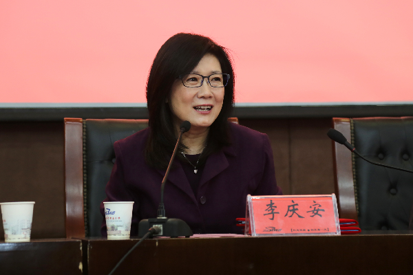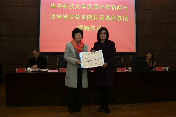 李庆安女士表示,受聘为新闻与法学学院荣誉院长感到十分荣幸。她结合自己的工作经历针对新闻、法学两个领域进行简要阐述。她说:“新闻从业人员,不仅要注重专业精进,还要有社会责任感,增加自己的道德和品格修养。在全球化浪潮下,法学专业的学生要有更宽阔和国际化的视野。”她十分乐意今后能与老师、同学们在新闻领域进行切磋,相信在师生的共同努力下,武昌分校的明天会更好。