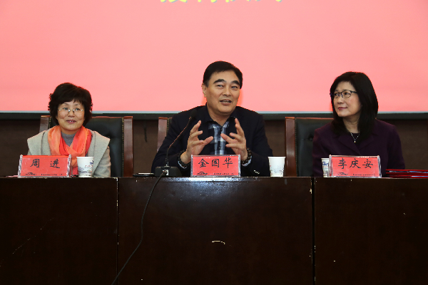金国华董事长在致辞中说,名师出高徒,对于学校师资队伍十分重要,将拥有海外背景及理念、拥有中华民族血统文化、拥有企业工作经验的老师引进学校,对今后的发展十分有利。李庆安女士长期关注两岸教育文化交流,希望她将自己的智慧、台湾好的做法带到新闻与法学学院,推动新法院不断向前。