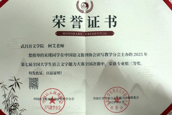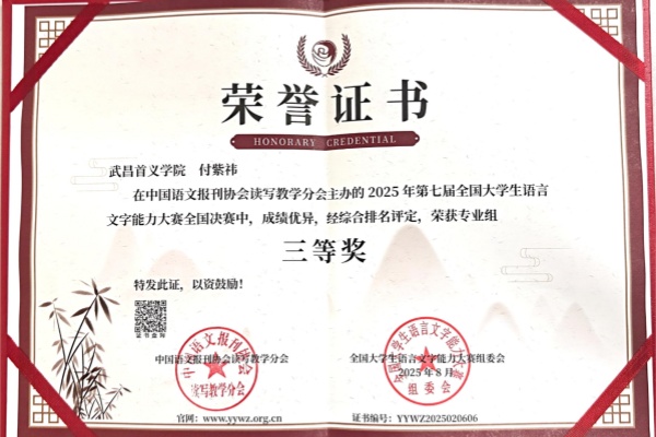 近日,2025年第七届全国大学生语言文字能力大赛全国决赛落幕。我校新闻与文法学院学子从全国千余所高校数万名参赛者中脱颖而出,斩获一等2项、二等奖1项、三等奖3项。而在此前的省赛中,曾获一等奖4项、二等奖5项、三等奖3项。这一系列成绩不仅展现了学子们扎实的语言文字功底,更彰显了该院在人文素质教育与人才培养方面的显著成效。