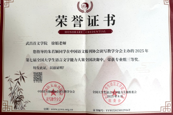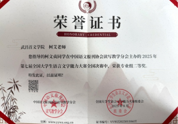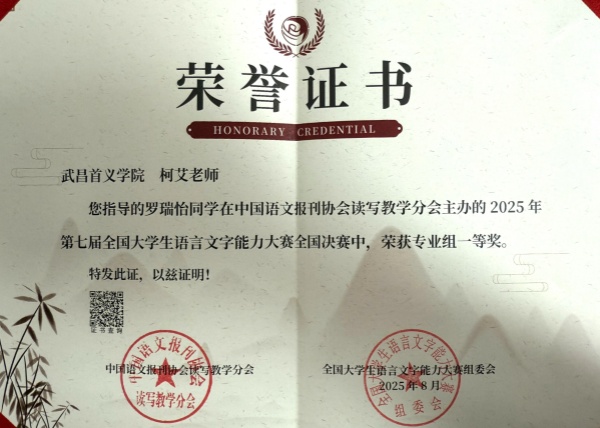 此次获奖的罗瑞怡同学谈及获奖感受,她难掩喜悦:“得知获奖时又惊又喜,觉得熬夜备赛的努力没有白费。这份荣誉不仅是对我个人能力的认可,更让我在专业学习中更有自信,坚定了我深耕汉语言文学领域的决心。”