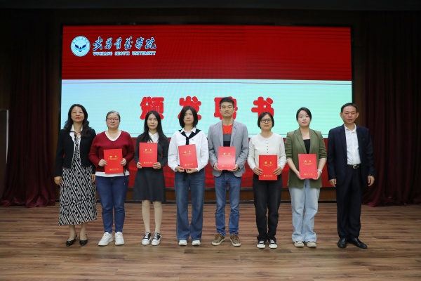 仪式上,李雪宣读2025-2026学年度青年辅导员导师结对名单。邹星庐、李雪共同为赵瑜等18位受聘导师颁发聘书。温馨的乐曲声中,青年辅导员代表依次上台向导师献花致敬,导师们则回赠礼品,传递对青年辅导员的鼓励与期许。