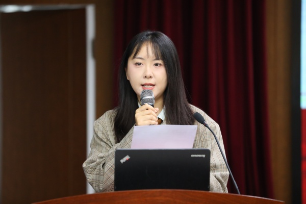 青年辅导员代表万子琛发言。她以雅斯贝尔斯“教育本质论”开篇,道出全体青年辅导员的心声,并代表青年辅导员郑重承诺:将以空杯心态做虚心生长的“树”,以温情传承做温柔推动的“云”,以真诚陪伴做唤醒灵魂的“教育者”,在导师引领下尽快融入角色,肩负起“为党育人、为国育才”光荣使命。