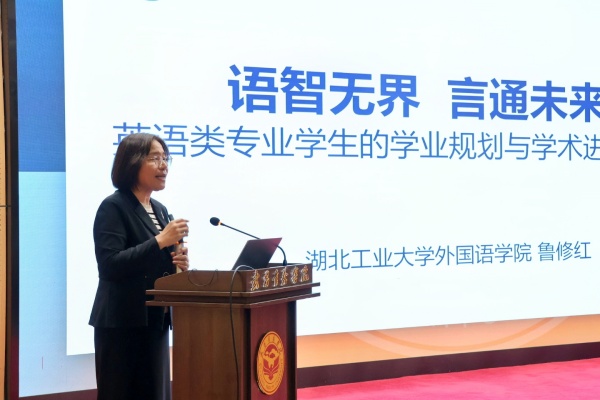 鲁修红以“语智无界,言通未来”为题,围绕“为何规划(why)、规划什么(what)、如何规划(how)”的逻辑框架,系统解析了英语类专业学生学业规划与学术成长路径。她指出,英专生需以国家对“具备国际视野、通晓国际规则、精通外语技能”人才的战略需求为导向,锚定“英语+”复合型、实战型人才培养目标。基于此,她提出学生需构建三重角色定位:一是“语言文化跨界者”,通过知识融合拓展能力边界;二是“文化深潜探索者”,深耕东西方人文底蕴以实现深度跨文化沟通;三是“科技向善守护者”,以人文素养为科技发展注入温度,防止技术应用偏离人文关怀。