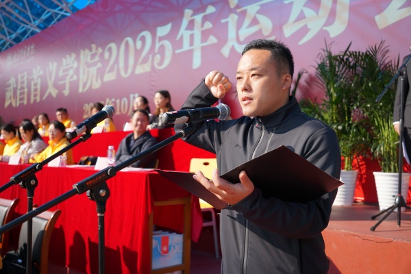 党委书记路海华致辞。他强调体育教育在强国建设与教育事业中的重要意义,指出一年一度的运动会是全校师生期盼的体育盛会,是对师生身体素养、拼搏精神和团队观念的一次集中检阅。他希望师生在运动中充分享受竞技的乐趣,在团结协作与互学互鉴中加深情谊,将坚韧不拔、永不言弃的体育精神内化为成长的动力,深刻体悟“健康第一”的理念,为实现梦想、成就未来奠定坚实的身心基础。最后,他宣布武昌首义学院嘉鱼教学改革基地2025年运动会开幕。