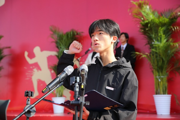 在激昂慷慨的国歌声中,五星红旗冉冉升起。裁判员代表张仕钊、运动员代表叶帅分别宣誓。