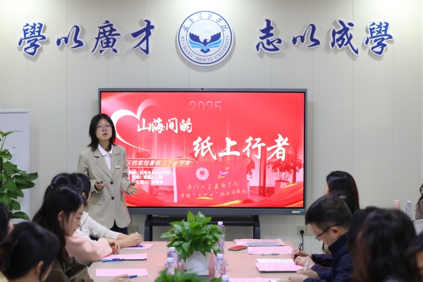 各实践团队分别进行了详细汇报,他们紧密结合专业特色,开展了一系列主题鲜明的社会实践活动。阳光爱心协会稻田志愿服务队每年前往十堰市西沟乡中心小学,为留守儿童健康成长贡献力量。信息科学与工程学院“码上青履・云履丝承”服务队,在甘肃省甘谷县利用数字技术助力非遗麻鞋工艺传播,开发小程序并开展直播带货,助力乡村振兴。机电与自动化学院星火实践队以“重温烽火岁月,感受抗战激情”为主题,重走湖北抗战路,赓续红色血脉。城市建设学院“水润乡情”实践队积极参与护河治理,用实际行动为美丽河湖保护贡献青春力量。外国语与教育学院乐学志愿服务队前往南漳县,以英语专业技能融入系列帮扶行动。经济管理学院“青孺力行”暑期社区实践先锋队通过精细化管理与创新性服务,为社区治理注入新活力。新闻与文法学院首梦天地校企地乡村振兴实践队,构建新闻传播矩阵,用新媒体传播马岭镇文化。艺术设计学院“首义艺境・马岭画韵”实践队以“墙绘增添活力,艺术链接乡村”为主题,用画笔打造特色乡村名片。
