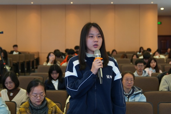 讲座最后,喻国明热情回答了师生关注的问题。针对我校新闻学专业负责人杨娟副教授提出的新闻传播研究前景问题,喻国明结合讲座内容和北京师范大学团队的研究实践,指出认知神经传播学与计算传播学是该领域值得深耕的重要方向。面对学生如何培养“调度能力”的宏观思维培养路径问题,他给出三点建议:一是深耕传播学经典文献,二是积极参与“传媒经济沙盘推演”等实践活动,三是多关注前沿讲座,持续拓宽认知边界。