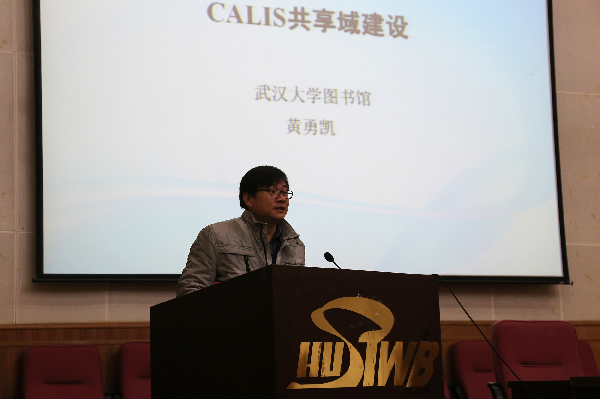 上午,武汉大学图书馆副馆长黄勇凯就“CALIS(中国高等教育文献保障系统)共享域建设”的主题,从图书馆用户的需求、数字图书馆框架、CALIS三期介绍、使用三个方面展开报告,解释了在资金不充足的情况下如何利用CALIS来实现资源的共享。独立学院唯一发言代表、本校信息技术中心李喆老师就远程访问配置及使用进行交流,汇报了如何使用信息技术实现读者校外访问图书馆资源。武汉大学图书馆姚昳昕老师围绕“独立学院如何应用共享域”进行交流探讨,他从如何申请成为CALIS成员馆、申请租用共享域成员馆工作概述及管理员工作快速指南等方面进行详细讲解,为独立学院老师提供了详细的使用指南。