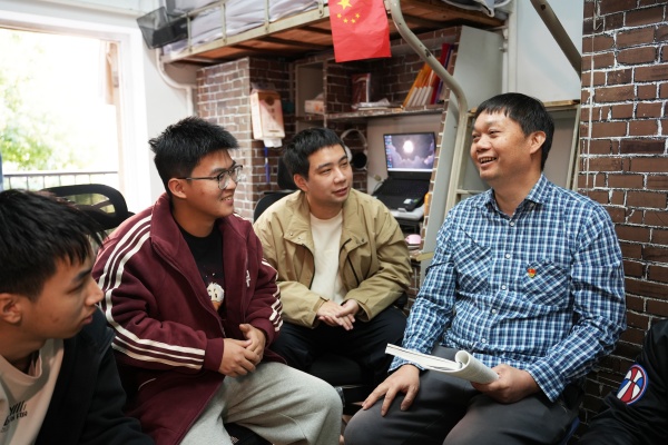 曾有一名学生,因与同学关系紧张,出现悲观情绪,苦恼无助时主动找到陈永蓉。他立马放下手头工作,耐心倾听,得知该生因小时父母陪伴太少,导致内心自卑,不善与人交流。自此,陈永蓉便经常主动约该生聊天,让其沐浴交心的暖流。同时与家长沟通,要求每周和孩子联系一次,给与家庭关爱。最终,该生走出自卑,学习也跟上了节奏,毕业时考上了事业编。