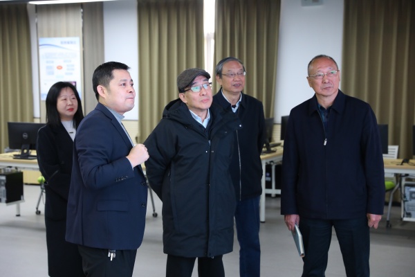 讲座前,郭义强参观了新闻与文法学院媒体融合仿真实验中心,给予高度肯定并提出宝贵指导建议。