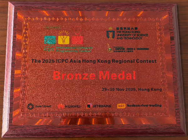 11月29日至30日,第50届ICPC国际大学生程序设计竞赛亚洲区域赛(香港)在香港科技大学举办。我校信息科学与工程学院ACM爱好者协会汤龙飞、李明辉和高静云组成的代表队,凭借扎实的编程功底、娴熟的算法应用能力和默契的团队协作,在连续五个小时的高强度比拼中沉着应战、高效解题,最终脱颖而出,斩获国际级铜奖。这一成绩实现了学校在该赛事中的历史性突破,更位列全国民办高校首位。