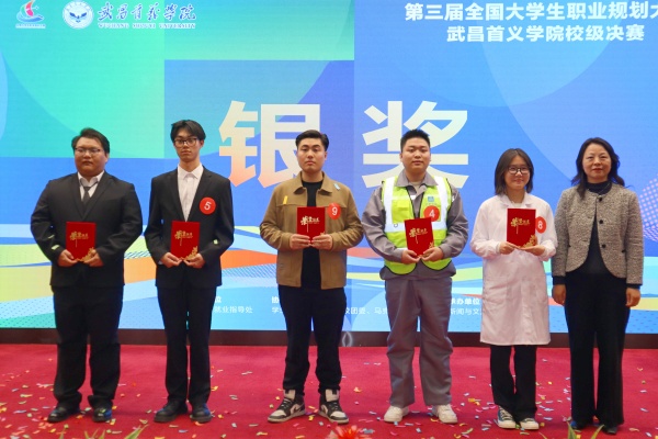经过决赛现场激烈比拼,机电学院杨得势荣获成长赛道金奖,城建学院潘梦雅、张志华,艺术学院倪彦哲荣获成长赛道银奖,信科学院郝文慧、机电学院张子严、新法学院叶羚荣获成长赛道铜奖。信科学院刘玉东荣获就业赛道金奖,机电学院曹承泽、张文强荣获就业赛道银奖,城建学院张满意、经管学院钟晨曦、新法学院汪馨晨荣获就业赛道铜奖。邱泽群、王玉洁、王天莹、管佳慧、王昆分获两赛道优胜奖。与会领导分别为获奖选手颁奖。