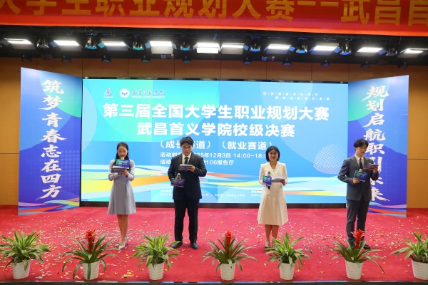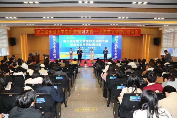 12月3日下午,第三届全国大学生职业规划大赛校级决赛在武昌校区成学楼106报告厅举行,18名晋级选手现场角逐。校赛组委会特邀高校生涯教育专家、知名企业资深HR、往届国赛省赛评委担任评审专家。校党委副书记、副校长金鑫,党委副书记李雪,各学院、基地党总支书记、副书记、辅导员、指导教师、学生代表等280余人现场观摩比赛。