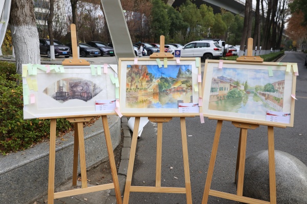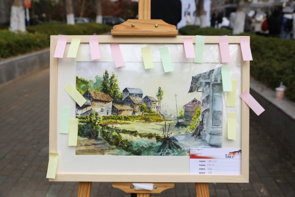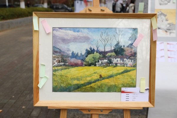 据了解,今年10月,2024级环境设计、视觉传达设计、产品设计、动画等专业491名学子,在17位专业教师带领下,赴浙江龙游开展了为期15天的“寻迹古村,对话生活”主题写生实践。师生们深入泽随古村、诸葛八卦村、游埠古镇等地,在青石板巷、马头墙下、烟火街市中观察、感悟与创作,灵活运用水彩、素描、速写及数字绘画等多种形式,将龙游独特的古建风貌、空间韵律与质朴民风转化为笔下的艺术语言。本次展览共展出168件作品。展出作品题材丰富,形式多样,既体现了学生们对自然与生活的细致观察和深刻感悟,也展现了他们扎实的专业基础和蓬勃的艺术创造力。
