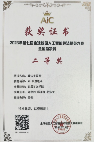 突破!信科学子斩获全球校园人工智能算法精英大赛全国二等奖