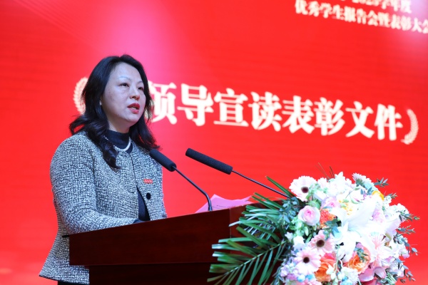 在庄严的国歌声中,大会拉开序幕。副校长李桂兰宣读《关于2024—2025学年度国家奖学金、国家励志奖学金获奖情况的通报》和《关于表彰2024—2025学年度学科竞赛获奖学生及组织单位的决定》,党委副书记李雪宣读《关于表彰2024—2025学年度三好学生、单项奖的决定》和《关于表彰2024—2025学年度优良学风班、文明宿舍的决定》。