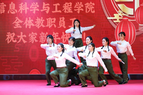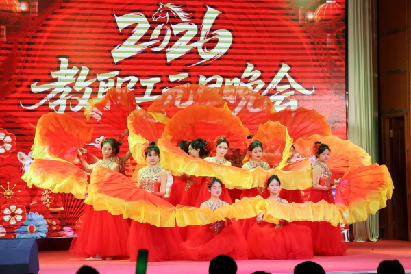 晚会在开场舞《花开中国年》中正式拉开序幕,欢快喜气的旋律骤然奏响,舞者手持彩扇翩然起舞,喜庆祥和的气氛旋即铺展,瞬间点燃现场热情。新闻与文法学院分工会带来的舞蹈《活力绽放·向光而行》活力四射,伴随欢快的旋律,灵动的舞步传递蓬勃朝气,饱满的状态高扬进取精神,感染了现场每一位观众。信息科学与工程学院分工会的舞蹈《信火·征程》极具感染力,动感舞姿与背景视频相得益彰,带领观众一同重温从建国初期奋进到新时代的光辉历程,对伟大祖国繁荣富强的骄傲自豪之情油然流溢。外国语与教育学院分工会的《春颂》别有情致,深情朗诵中,曼妙舞姿间,老师们教书育人的卓然风华如春风袭来,引发全场共鸣。经济管理学院分工会的舞蹈《热烈之火》将新疆风情与弗拉门戈韵律巧妙融合,衣袂飘飘,舞步热烈,恰如盛世焰火,尽显异域风情和艺术之魅。基础科学部分工会的《冠世一战》大气雄浑,吉他、架子鼓、小提琴共襄演绎,八段锦、舞棍与歌唱交融一体,尽展教职工昂扬向上的精神风采与丰盈多元的育人才情。机电与自动化学院分工会带来歌舞组合《智竞未来》,动感街舞与专业特色深度融合,力与美,致敬奔赴未来的育人匠心,气与神,诠释昂然教坛的使命担当。嘉鱼教学改革基地分工会的歌伴舞《怎么说我不爱你》以歌传情,以舞彰意,有力彰显嘉鱼基地人凝心聚力谋发展、砥砺前行育良才的精神风貌。城市建设学院分工会的歌伴舞《小美满》温情脉脉,深情歌声与婀娜舞姿水乳交融,诠释了寻常生活里的点滴美好和对璀璨未来的由衷希冀。后勤保卫分工会匠心独运,情景舞剧《上春山乐享首义烟火》别出心裁,将食堂厨师、校卫队员、车队司机的日常工作场景真情演绎,寻常烟火里,忠于岗位事,表达了后勤人坚定服务学校高质量发展的豪情和决心。