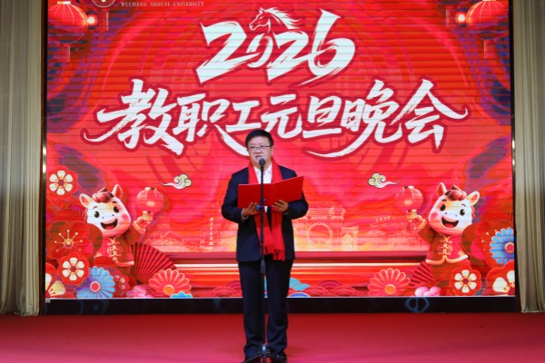 金蛇辞岁留盛景,玉马迎春赴新程。12月30日晚,学校2026年教职工元旦晚会在武昌校区首义礼堂开演。全体校领导,各学院(部)、嘉鱼基地、职能部门负责人、全体教职工和学生代表们齐聚一堂,共贺新春。