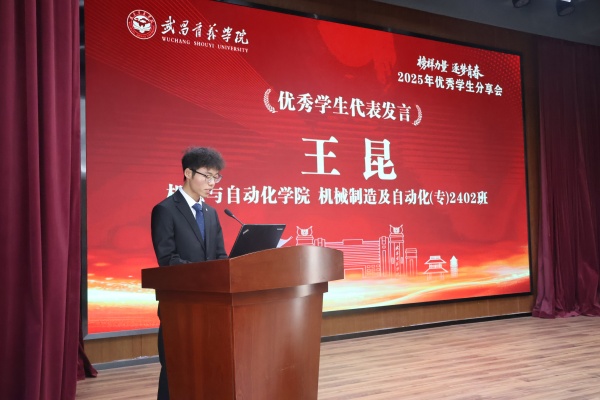 校三好学生代表、机电与自动化学院机械制造与自动化(专)2402班王昆,以“以行动为笔,在跌倒中爬起”为题分享了成长故事。初入大学时,他曾迷茫无措,但深知“基础不牢,地动山摇”人生要义,一步步夯实专业根基。课堂上,他紧跟老师思路,课下及时向老师请教、复盘知识,还借助线上平台拓宽知识边界,摸索出适配自身的学习方法。为锻炼综合能力,积极参与学科竞赛,与团队日夜攻坚、反复打磨方案,最终收获亮眼成绩,累计斩获国家级奖2项、省级奖1项,另有3项专利正处于审核阶段。同时积极投身志愿服务,在奉献中实现青春价值。他最后表示,不必畏惧试错,大胆去尝试,要让青春在奋斗中绽放最绚丽的光彩。
