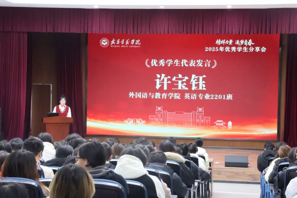 国家奖学金获得者代表、外国语与教育学院英语2201班许宝钰以“以笃行为舟,以热爱为帆”为题,讲述自己的成长故事。她专注专业学习,摸索出以深度精听为核心的学习方法,构建起完整的学习体系。课余每日坚持在图书馆自习,即便放假也从不中断,最终连续三年专业成绩排名第一,高分通过四六级,以优秀等级获英语专四证书。勇敢走出舒适区,在竞赛赛场淬炼成长,荣获省“挑战杯”竞赛等国省级奖10余项。躬身实践,在社会服务中“学思践悟”,践行入党誓言。已找到心仪工作的她表示,将心怀感恩,牢记校训精神,以青春之笔书写青年一代的首义故事。