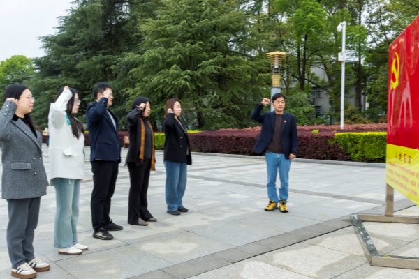随后,师生团队来到湘鄂赣边区鄂东南革命烈士陵园。在革命烈士纪念碑前,全体党员重温入党誓词,敬献花篮、肃立默哀,向近30万革命先烈致以崇高敬意。纪念馆内,一幅幅浮雕、一件件文物诉说着阳新“二二七惨案”等革命历史,师生们深入学习感悟鄂东南革命根据地的光辉历程和先辈英雄事迹。大家深受触动,纷纷表示要铭记先烈遗志,将红色精神转化为奋进动力,在学业科研中攻坚克难,在社会实践中服务奉献,以实际行动赓续红色血脉,担当时代使命。
