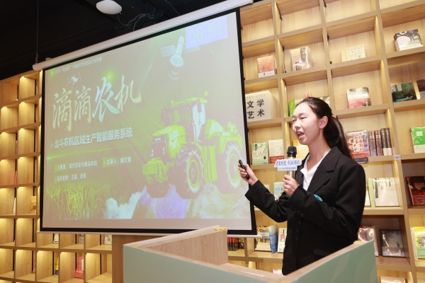随后,我校8个优质创业项目同台竞技,充分展现青年学子的创新力量与创业热情。项目涵盖碳循新生、豆类轻养、数字IP、隔振装置、滴滴农机、光明茶旅创新商业模式等多个领域,项目兼具创新性与实用性。其中,鑫耀航宇项目专注于船舶管路穿舱的隔振装置及减震技术,首创高温隔震筒仓接管与轴向双波管结构,使活塞空压机等设备噪声降低。楚译智航项目以“AI+语言服务”为核心,打通“翻译—设计—出海”全链路,构建标准化、可复制的文旅国际传播体系。滴滴农机自研北斗农机区域生产智能服务系统,针对农机服务中“供需对接慢、场景兼容差、风险防控难”三大痛点,融合北斗多模态监测算法与对抗训练协同病虫害预警算法,破解行业难题。智调灵眸则聚焦铁路调车作业安全,自研基于知识规则匹配的三维点云目标检测模型,结合相机与激光雷达融合感知技术,打造智能感知预警装置,为铁路调车安全保驾护航。