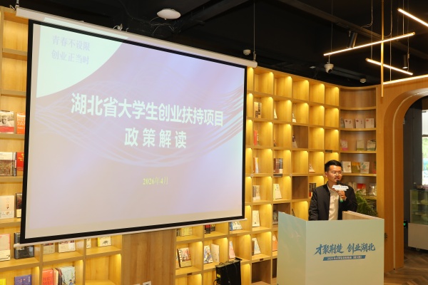 活动现场,政策宣讲与导师分享双向发力,为大学生创业“种子”赋能护航。刘亚伟首先为在场大学生带来湖北省大学生创业扶持项目申报政策解读。他系统介绍了自2012年以来湖北省持续完善的大学生创业扶持政策体系,特别是“创意组”与“创业组”双轨并行的扶持机制,“真金白银”的资金支持,以及配套创业培训、孵化服务、投融资对接等全链条服务,让在场学子清晰掌握了创业扶持政策要点。