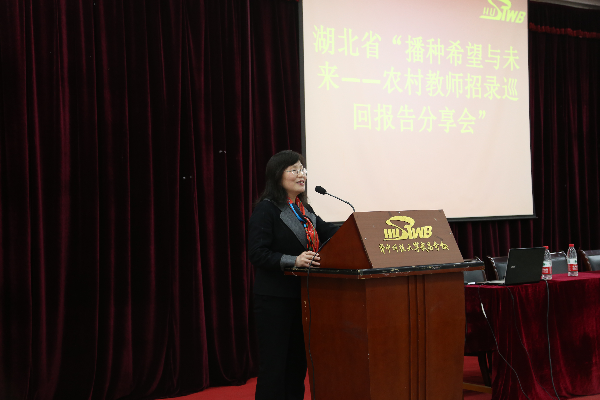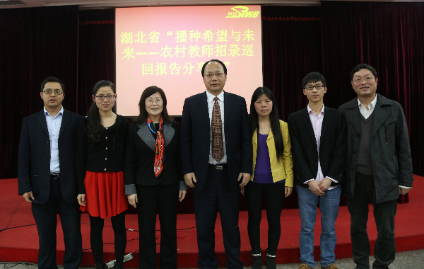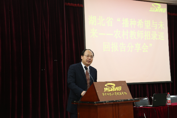 4月20日,湖北省“播种希望与未来—农村教师招录巡回报告分享会”在11栋教学楼106教室举行。省教育厅高校毕业生就业服务中心丁雪峰主任,我校校长周进及招就处负责人出席分享会。