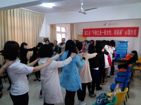 活动伊始,赵老师给参加者发放了调查问卷,分别从情绪与压力管理、工作与生活平衡、婚恋与情感、家庭教育等方面对大家的需求情况做基本了解。根据问卷反馈情况,赵老师着重谈到了婚恋关系及亲子教育的问题。为了活跃气氛,开场时赵老师组织大家进行了“马兰开花”“泡泡糖”等游戏活动,通过这些游戏,大家不仅相互增进了解,而且通过距离接触,彼此都能够敞开心扉,畅言内心感受。针对很多女教工谈到的“面对日新月异的科技发展和信息时代的汹涌浪潮,以及家庭、工作和孩子的问题时,她们需要扮演多种角色,面临的挑战与压力更为严峻与激烈,往往力不从心,疲惫不堪”这类问题,赵老师通过实际案例,引导大家相互进行经验交流。赵老师强调,很多时候我们不要对自己要求过高,片面追求完美,也不要试图要求孩子完美。赵老师的中肯建议和亲和力赢得了大家的一致好评。最后,赵老师谈到,通过开展一系列心理活动,大家会慢慢意识到自己仍有需要改进之处,希望大家学会释放,慢慢调整自己,健康快乐地生活。