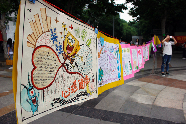 活动以“我好,世界才美好”为主题,现场分为心理手抄报展、寻找心灵秘籍、我是我,所以我爱我、快乐泡泡糖、幸福抱抱团、趣味心理常识问答、真情足迹、欢乐泼水节、青春欢唱9个版块。每个版块都引来同学们驻足围观。