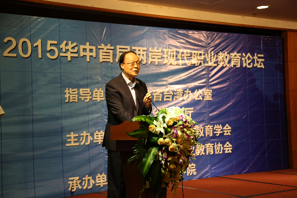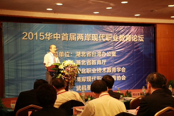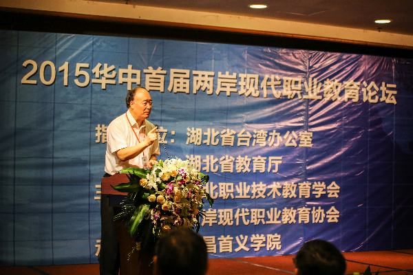 6月6日,2015华中首届两岸现代职业教育论坛在学校国际学术交流中心举行。国家教育部原副部长、江苏省原副省长、江苏省文联主席王湛,中国高等教育学会会长瞿振元,教育部职业教育中心研究所所长、博士杨进,两岸现代职业教育协会(台湾)理事长、台湾教育大学系统总校长吴清基,湖北省教育厅副厅长张金元,湖北省人民政府台湾事务办公室副主任涂阳斌,湖北省职业技术教育学会会长、武昌职业学院院长马必学,两岸现代职业教育协会(台湾)副理事长周灿德等120多名专家学者莅临。我校董事会董事长金国华,党委书记冯向东,校长周进出席论坛。吴清基博士、马必学教授主持。