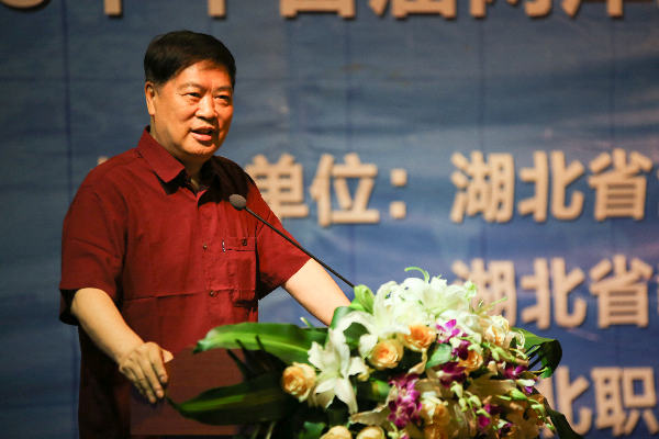 湖北省教育厅副厅长张金元致开幕辞。“科教领先,唯楚有才”,张副厅长用一组数据介绍了湖北省高等教育的发展状况,目前共有高校127所,本专科生150万名;科研实力雄厚,高校科研5万多人,科技经费60个亿;门类齐全,12大学科涵盖经济社会发展各类职业。他对高等职业教育提出要求,一是加快构建现代职业教育体系;二是大力推进产教融合,校企合作;三是升化教育改革,提高人才培养质量。