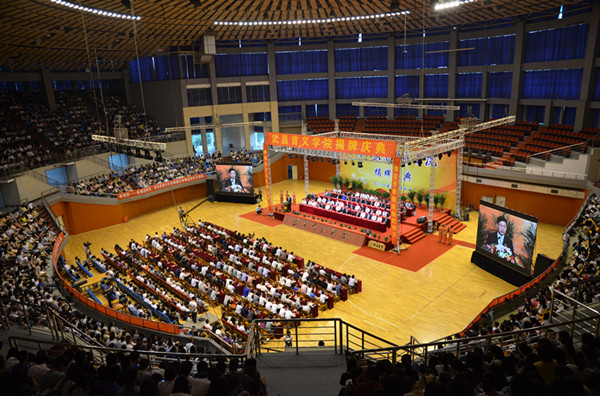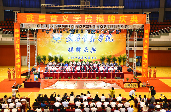 6月7日10点零8分,武昌首义学院揭牌仪式在校体育馆举行。现场灯火辉煌,气氛热烈,来自社会各界的代表和数千名师生,见证了这一激动而幸福、神圣而庄严的时刻。