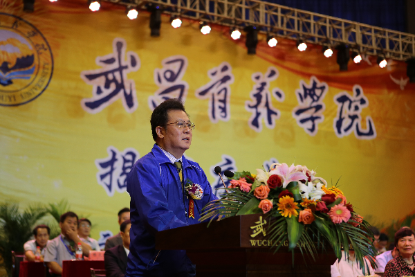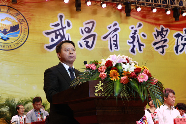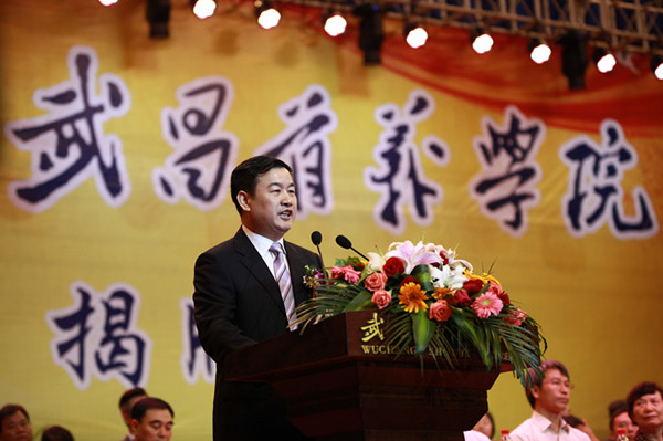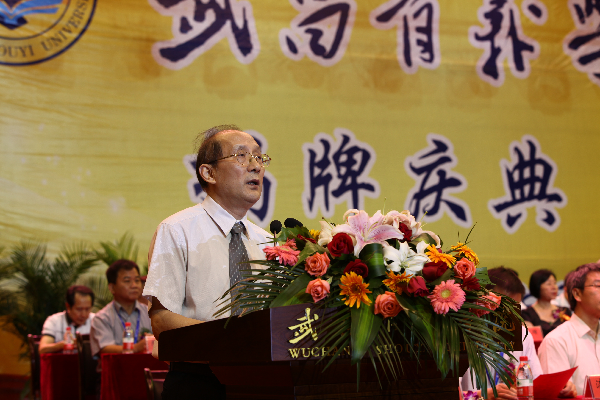 武汉科技大学校长孔建益教授代表在鄂高校对武昌首义学院揭牌表示祝贺。他说,武昌首义学院已形成“社会主义核心价值观与专业核心能力建设有机统一”的人才培养核心工程体系,勾勒了一幅中国独立学院发展的缩影。他赞扬我校八年前即确立培养应用型人才的办学定位和取得的一系列骄人成绩,祝愿学校在今后的发展中以“敢为天下先”的精神,永远打响中国民办院校创新发展的“第一枪”。