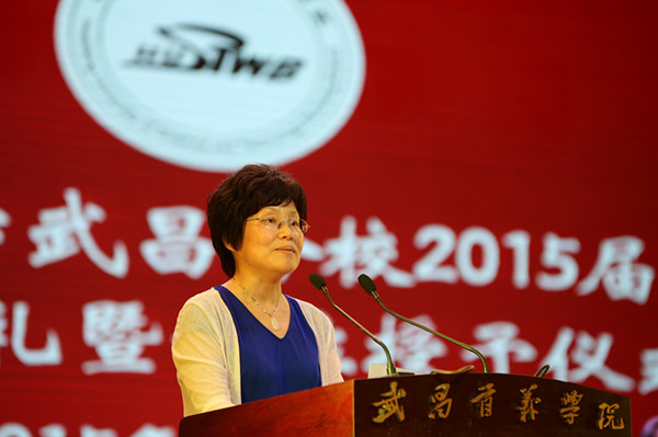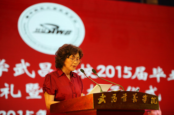 周进校长首先发表讲话。她对顺利完成学业,即将跨入社会和人生新里程的2015届毕业生们表示热烈祝贺。她说,自2011年以来,学校在提升应用型人才培养质量、夯实学校发展基础、建设积极向上的校园文化等方面都取得了重大进展。今年6月,全体师生共同见证了学校更名,翻开了历史新篇章,无论对于社会还是学校,2015届毕业生都是承前启后、继往开来的有着特别意义的一届毕业生。周校长对毕业生提出希望,做一个勇于担当的人,牢记父母养育之恩,勇担家庭和社会责任;做一个积极进取的人,追求卓越,敢为人先;做一个平和豁达的人,顺而不骄,逆而不馁。