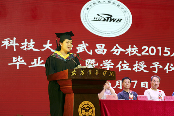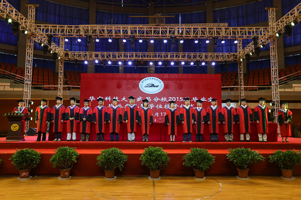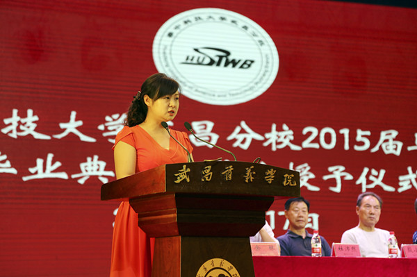 李桂兰副校长宣读了《关于表彰华中科技大学武昌分校2015届优秀毕业生的决定》、《关于授予白杨等2739名应届本科毕业生普通全日制学士学位的决定》、《关于公布2015届本科毕业生优秀毕业设计、论文评选结果的通知》、《关于表彰先进学生党支部、优秀学生党支部书记、优秀学生党员的决定》、《关于奖励2015年部分学科竞赛获奖毕业生的决定》。521名本专科毕业生被授予优秀毕业生的称号;2739名毕业生被授予学士学位,254篇优秀毕业设计(论文)受到奖励,其中,一等奖30篇,二等奖59篇,三等奖165篇;4个先进学生党支部受到表彰;2人被评为优秀学生党支部书记,53人获得优秀党员称号;7名在各类学科竞赛中取得优异的同学受到表彰。