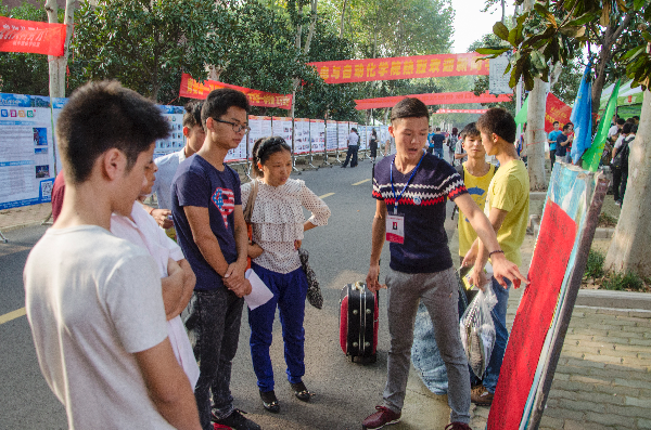 还有这么一群人,他们时刻挂着微笑,穿梭在人群中,为新生服务。校学生会、青年志愿者协会、阳光爱心协会等组织,和各院系的志愿者一起耐心地为新生解决困难。伴随着一阵阵悦耳的音乐,大学生新闻中心广播台滚动播报校内迎新信息以及新生报到流程。新闻中心的学生记者们穿梭在各个迎新点记录新生点滴,传播学校信息,传递正能量。