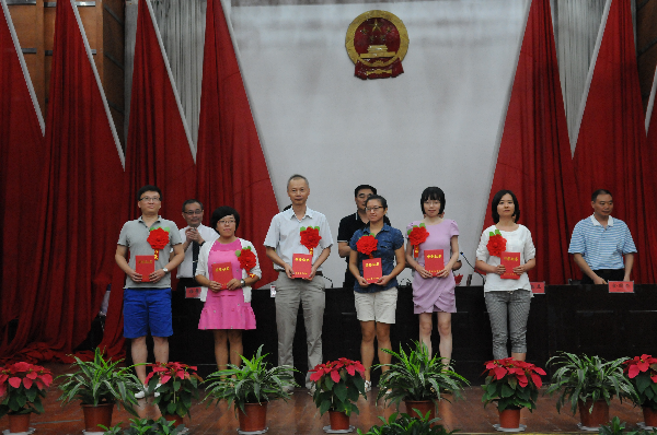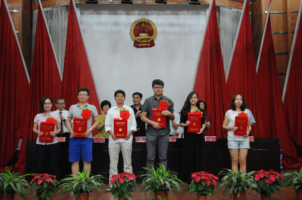 周进校长宣读了《武昌首义学院关于表彰2015年优秀教师、优秀教育工作者的决定》,李桂兰副校长宣读了《关于表彰2014—2015学年度教学质量奖评审结果的通知》、《关于表彰2014年省级优秀学士学位论文指导教师和2015届本科生校级优秀毕业设计/论文一等奖指导教师的通知》,郭景致副校长宣读了《关于公布2014届本科毕业设计、论文工作优秀院系评比结果的通知》、《关于表彰2014—2015学年度考场管理工作先进单位的通知》。在欢快的乐曲声中,校领导向受表彰的单位和个人颁奖。