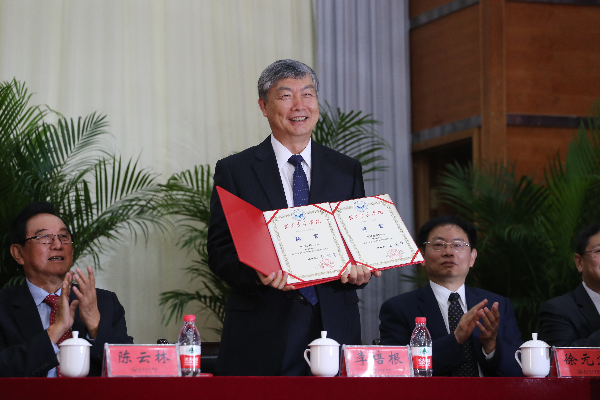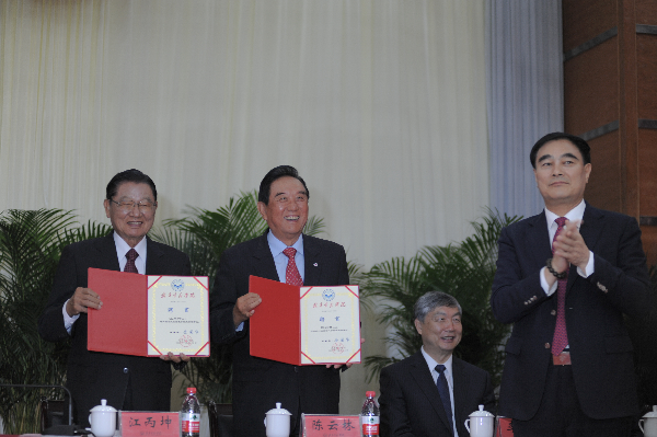 会上,江丙坤、陈云林受聘为武昌首义学院荣誉理事长,李培根受聘为武昌首义学院执行理事长、专家委员会主任。金国华理事长颁发聘书。