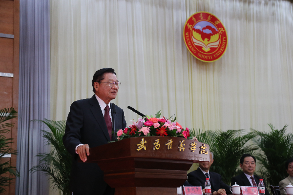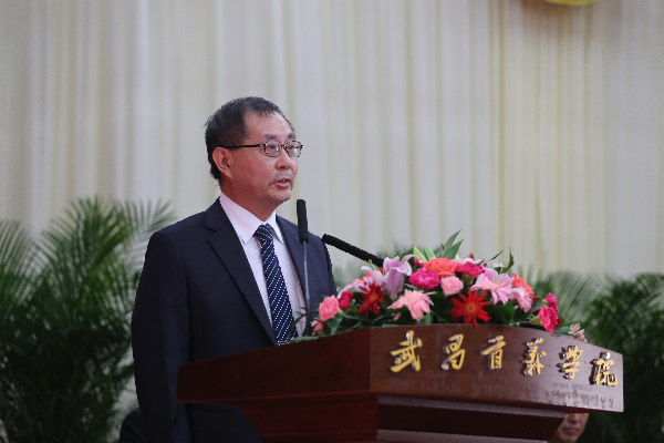 来自台湾的特聘副校长郭景致发表讲话。他衷心祝贺授牌仪式成功举行,并对远道而来的嘉宾表示真诚问候。他说,来武汉一个多月,已经很好地融入了大陆高校环境与社会环境之中。目前正致力于引进台湾高等职业教育的优质理念与做法,为武昌首义学院开展科研、学科专业建设、校企合作、职业教育转型以及大学生创新创业等方面工作提供经验。非常荣幸成为湖北省第一位来自台湾高校的副校长,教育是交流的根本,两岸教育各有所长,只有取长补短,才能够将习主席所提倡的大众创业、万众创新,以及三严三实落实到教育中。中华文化要以创新创业的精神努力去发掘,希望通过两岸教育的交流,让未来心手相连,共同实现中华民族的伟大复兴。