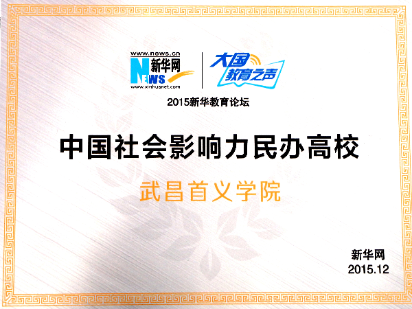 学校荣获“2015年度•中国社会影响力民办高校”称号