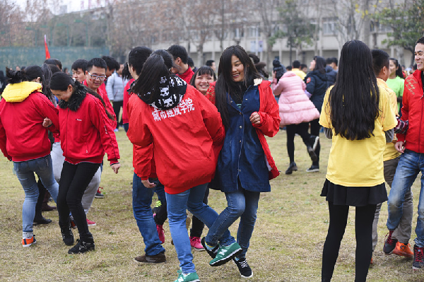 12月8日中午,由大学生心理咨询中心举办的心理拓展活动在11号楼前火热比拼。学生处常务副处长李雪、副处长高霞,各院系党总副书记、辅导员及2015级学生代表近200人参加活动。心理中心魏谨老师主持活动。