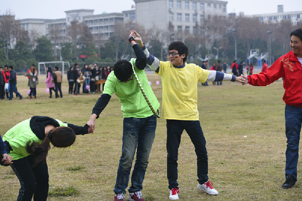 12时30分,同学们分列成8支整齐的队列,齐聚在暖阳和煦的活动场地,以多姿多彩的个性展示和激情四射的啦啦操表演拉开活动序幕。活动设有“相逢是首歌”、“认识你真好”、“今儿个真高兴”、“朋友,朋友”和“拓展有爱的生命,放飞灿烂的心情”等多个环节。在赵翠荣、魏谨老师的指导下,各院系队员齐心协力、相互激励,克服设定的障碍。