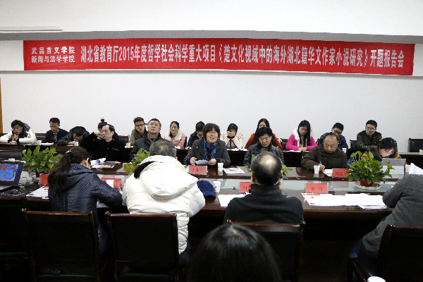 1月6日,学校获批立项的省教育厅2015年度哲学社会科学重大项目《楚文化视域中的湖北籍海外作家小说研究》开题报告会举行,该项目由新法院江少川教授主持申报。副校长郭景致,科技处副处长胡容玲,新法院院长石长顺、副院长余林、教师及学生代表参加会议。