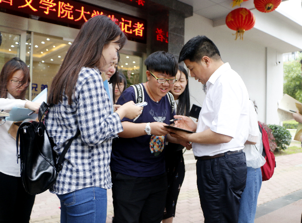 交流环节中,孙东林一一回答了学生记者的提问,并分享了自己因诚信而赚得第一桶金的故事以及获得“感动中国十大人物”荣誉之后生活的改变,勉励大家应当踏实做人,实在做事。
