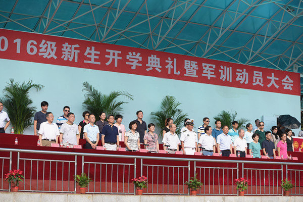 9月2日上午9点,学校隆重举行2016级新生开学典礼暨军训动员大会。海军工程大学陈进军上校,校领导冯向东、周进、吴昌林、李桂兰、金国杰、邹星庐,及各院系、各职能部门负责人出席典礼仪式。大会由李桂兰副校长主持。