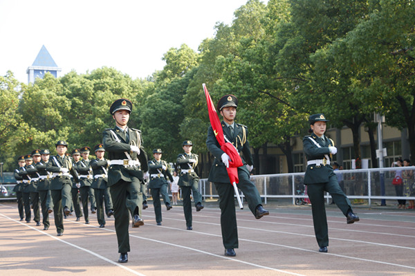典礼最后,教官们为师生带来了精彩的队列表演。随后新生们立即投入到紧张的军训之中,军训团5个营18个连56个排,3300余名新生将在为期15日的军训中接受各项军事基本技能和军事理论知识的培训。