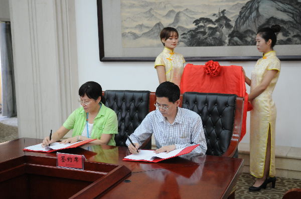 周进校长、陈卫中总经理代表双方签署合作协议,并为EDA/SOPC联合实验室揭牌。与会人员合影留念。
