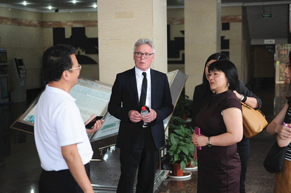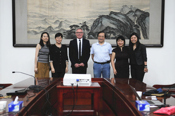 参观完校园,马克•卡罗尔教授一行与周进校长、吴昌林常务副校长在行政楼八楼会议室进行会谈。双方各自介绍了学校概况,共同商谈了合作办学相关细节。